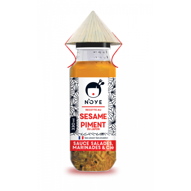 A base de semillas de sésamo, por sus sabores dulces cercanos a la avellana, y chile japonés por su ligero picante en boca, esta salsa atraerá a los amantes de las sensaciones gustativas. Sin colorante ni emulsionante.