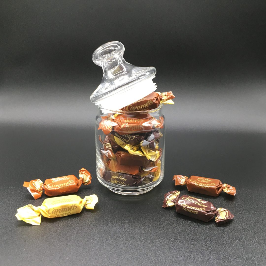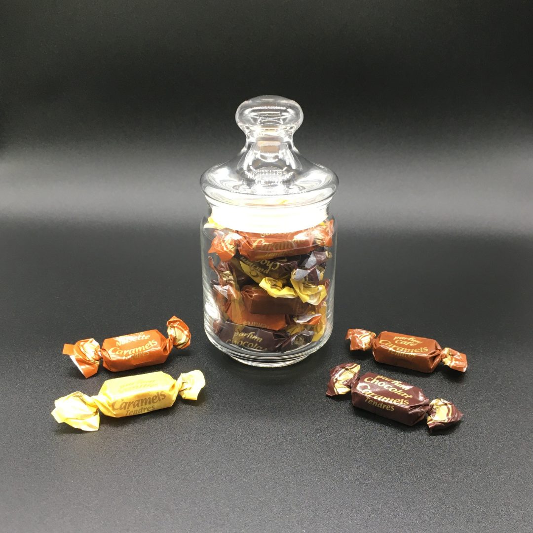 Bombonera de vidrio con 110g de Caramelos tiernos de Dupont d’Isigny.