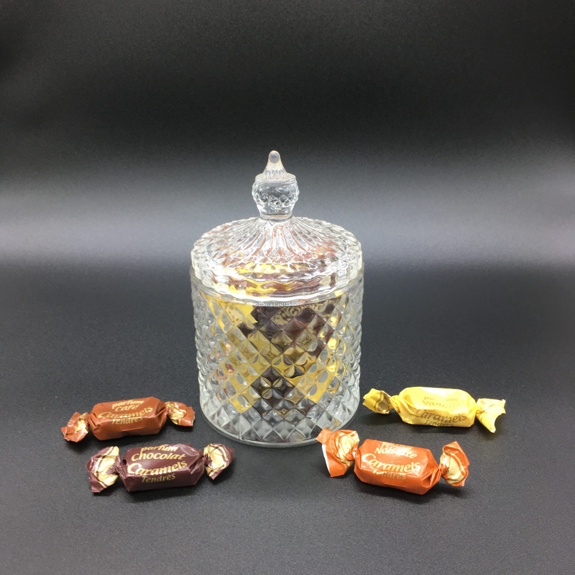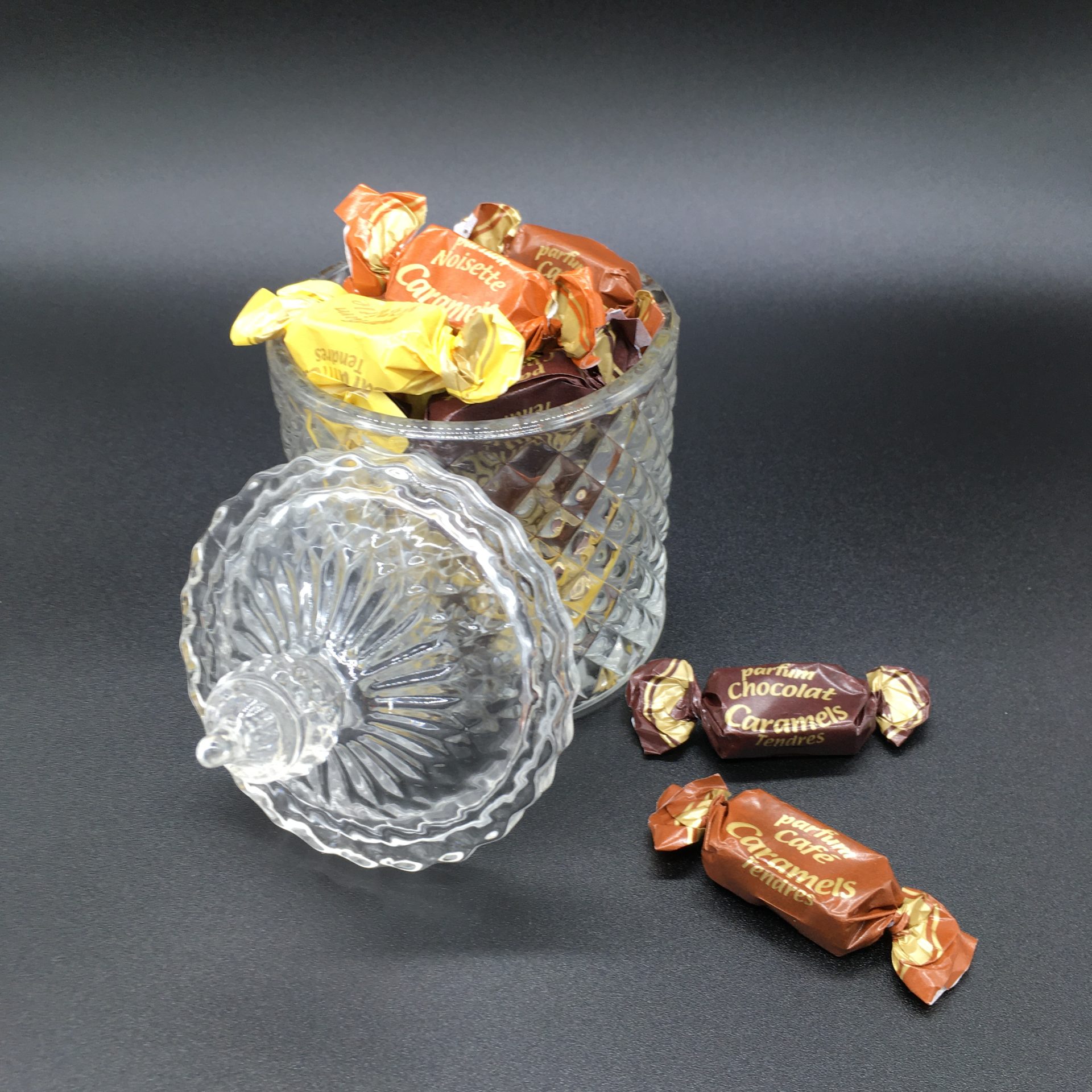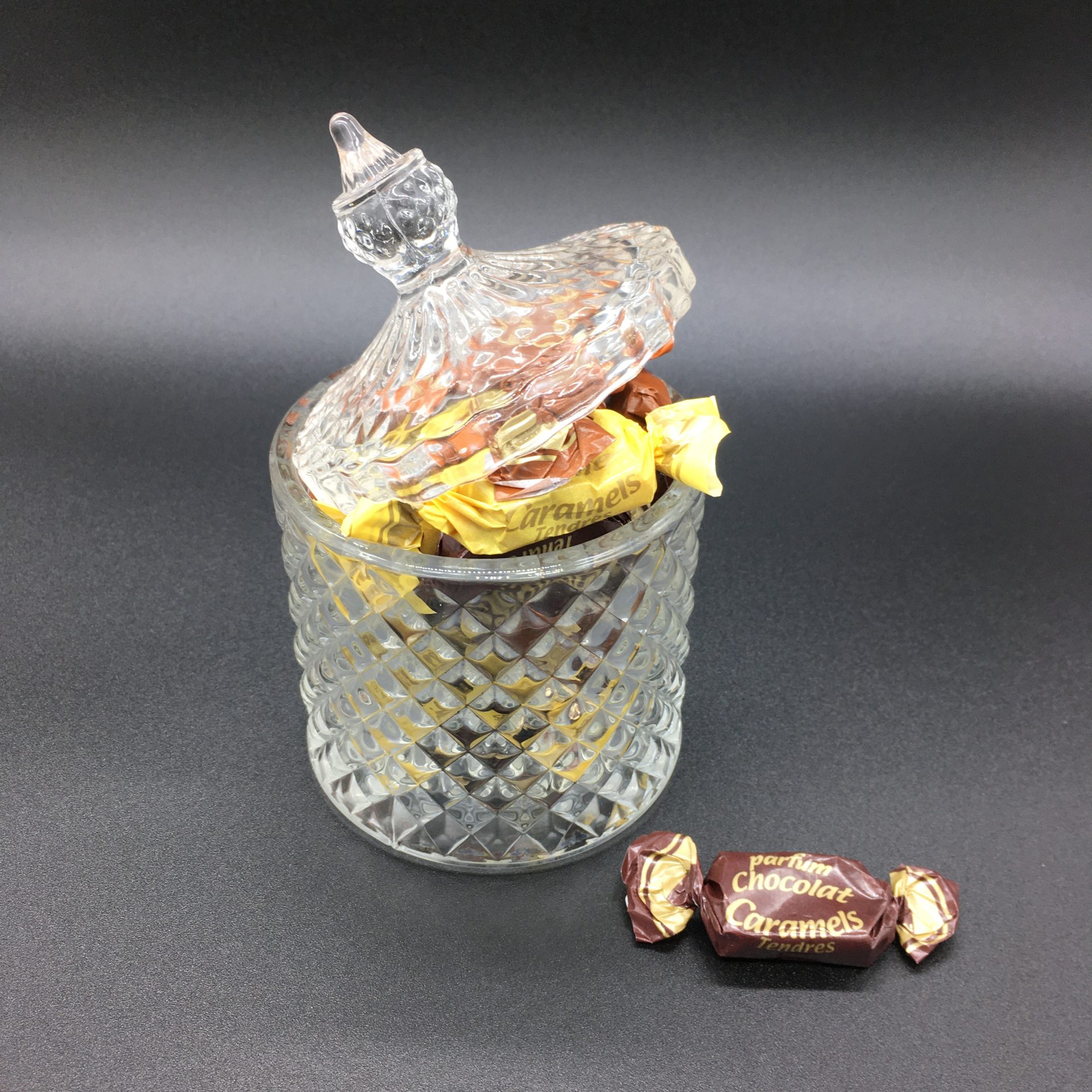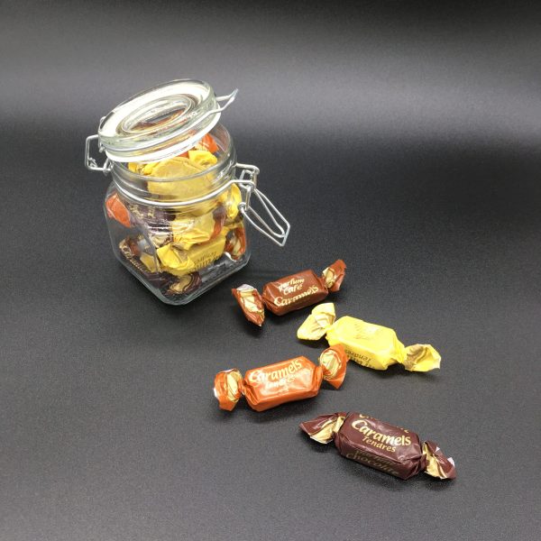 Bombonera de vidrio con 135g de Caramelos tiernos de Dupont d’Isigny.
