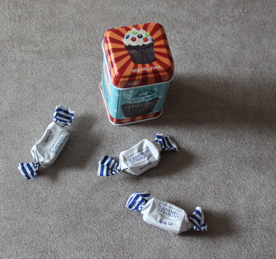 Una Mini Lata decorada Cupcake con 40g de Caramelo Fondant, 3 sabores: Mantequilla Salada, Avellana y Vainilla. Sabroso caramelo que no se pega a los dientes. Elaborado artesanalmente en Isigny sur Mer (Francia)
