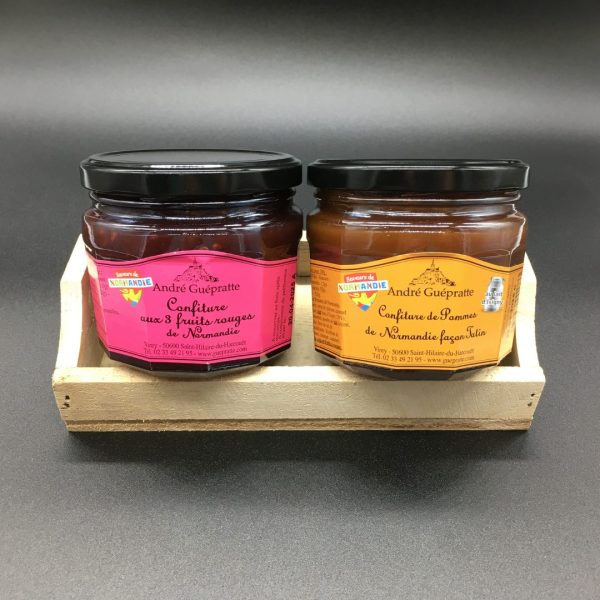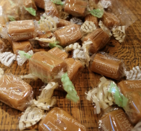 Una Mini Jarra de vidrio con 50g de Caramelo de Mantequilla Salada de Isigny : Sabroso caramelo tradicional con un toque de sal que resalta su sabor, elaborado artesanalmente en Isigny-sur-Mer (Francia)