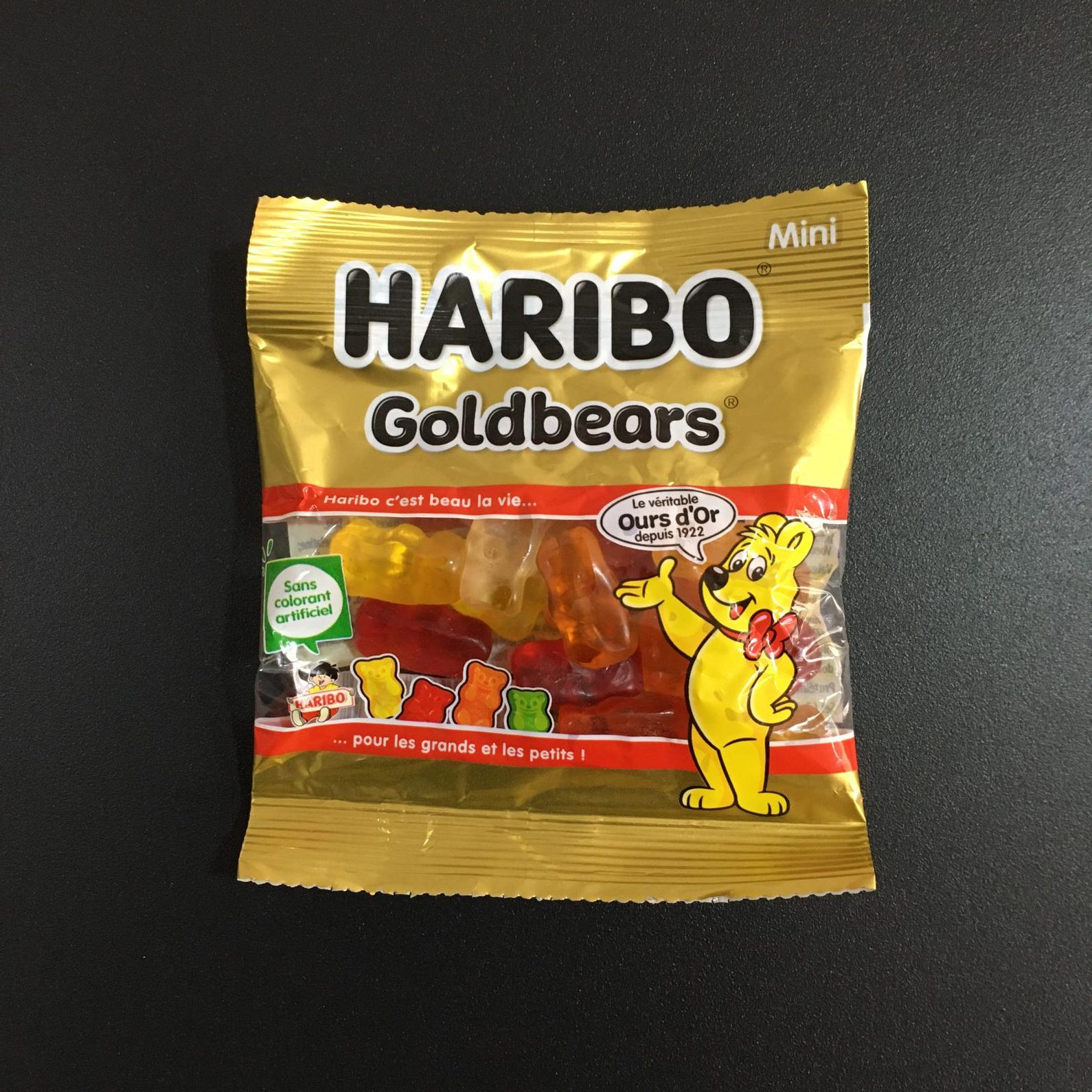 Surtido de golosinas Haribo en cómodos mini sobres de 40g para llevar en el bolsillo.