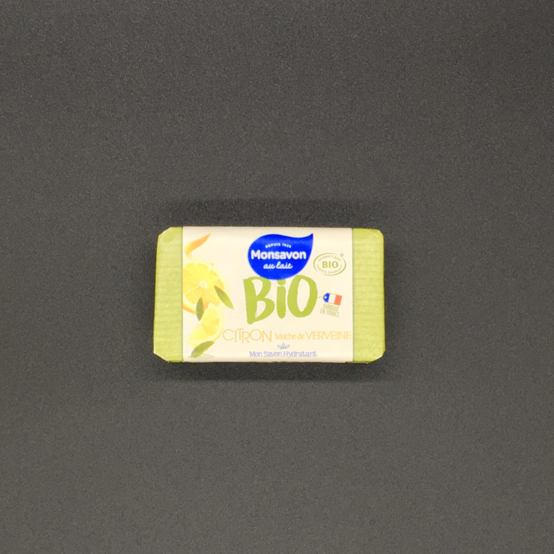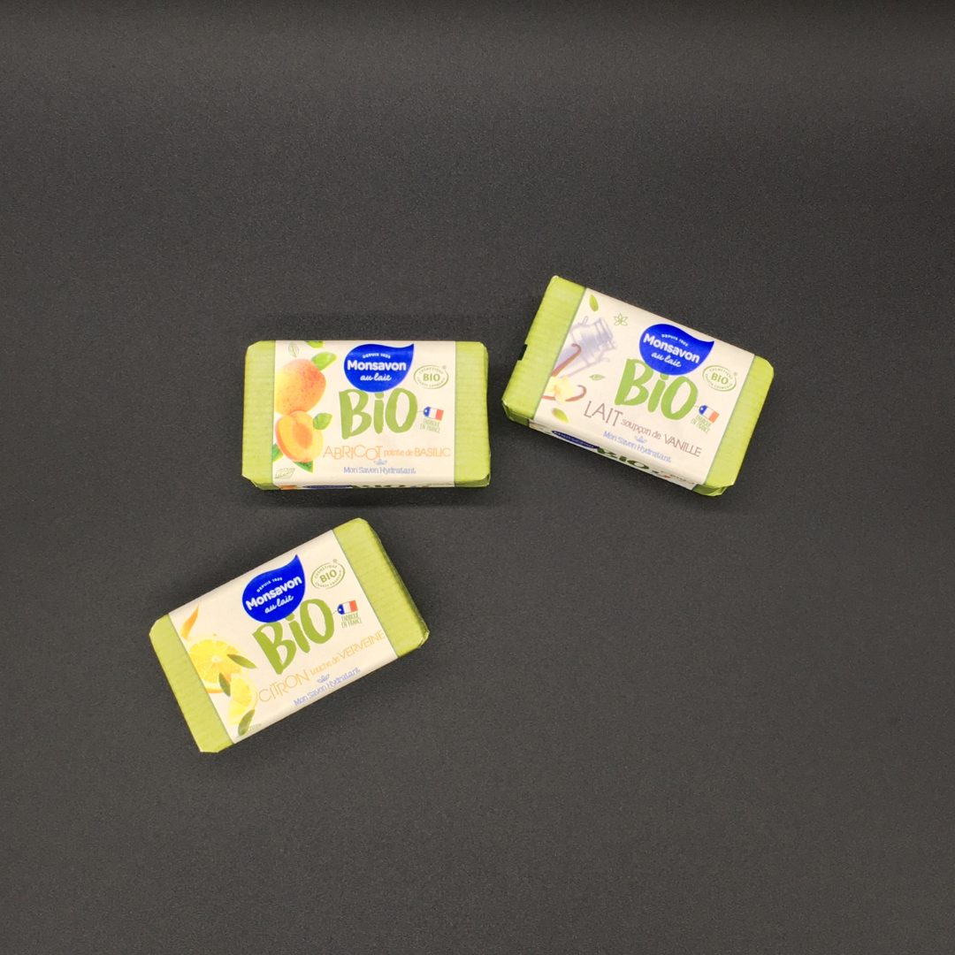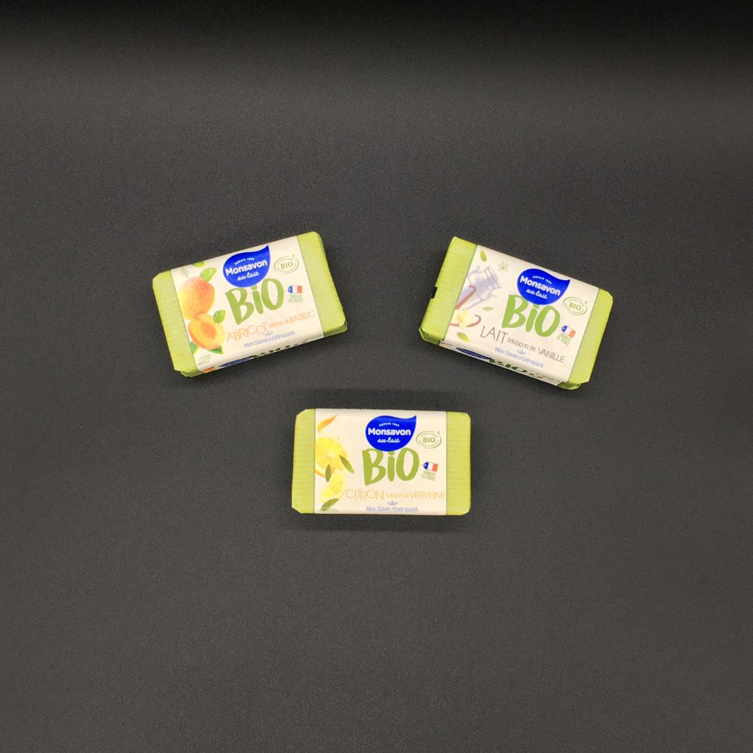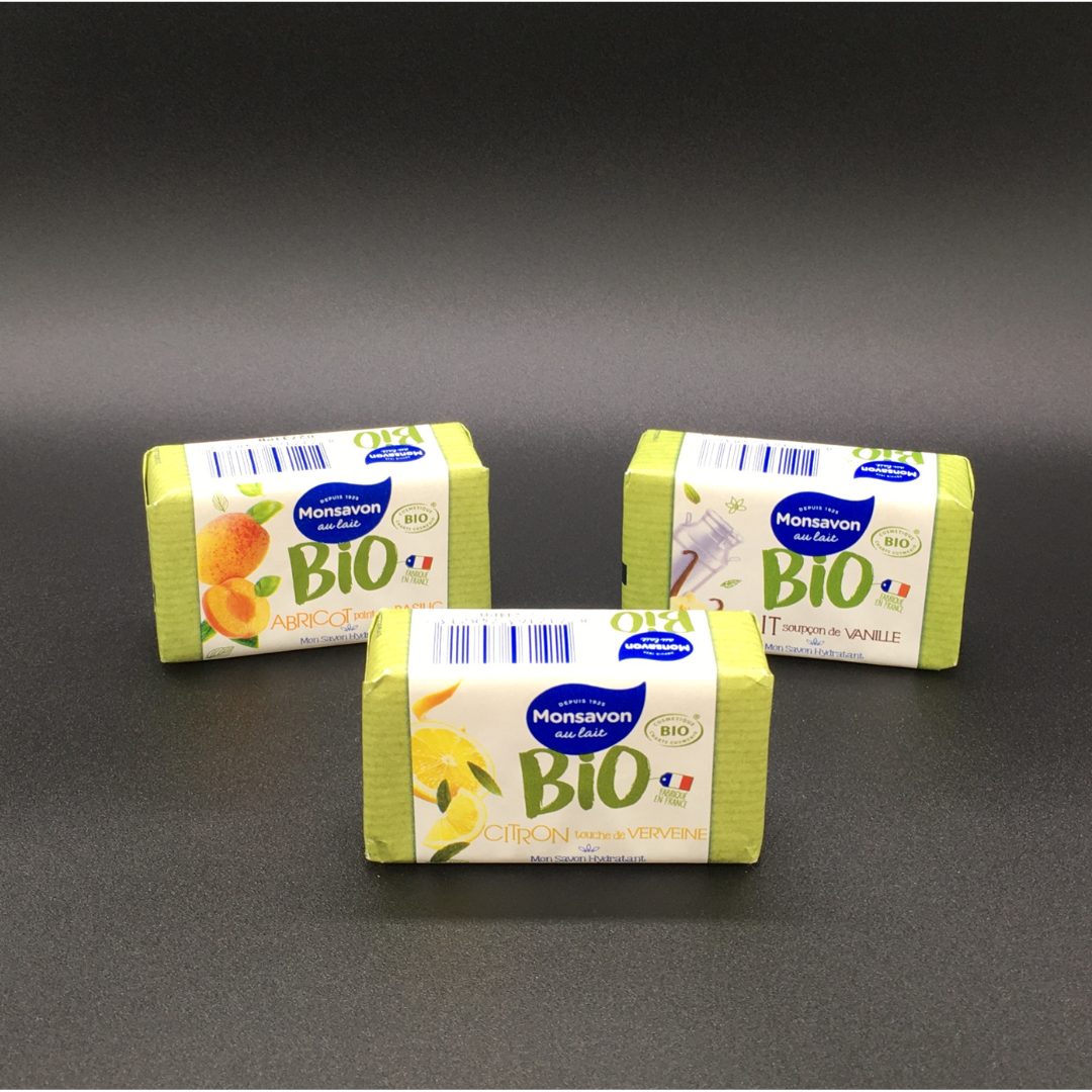 Jabón hidratante y antibacteriano Monsavon Bio certificado Cosmos Organic por Ecocert.