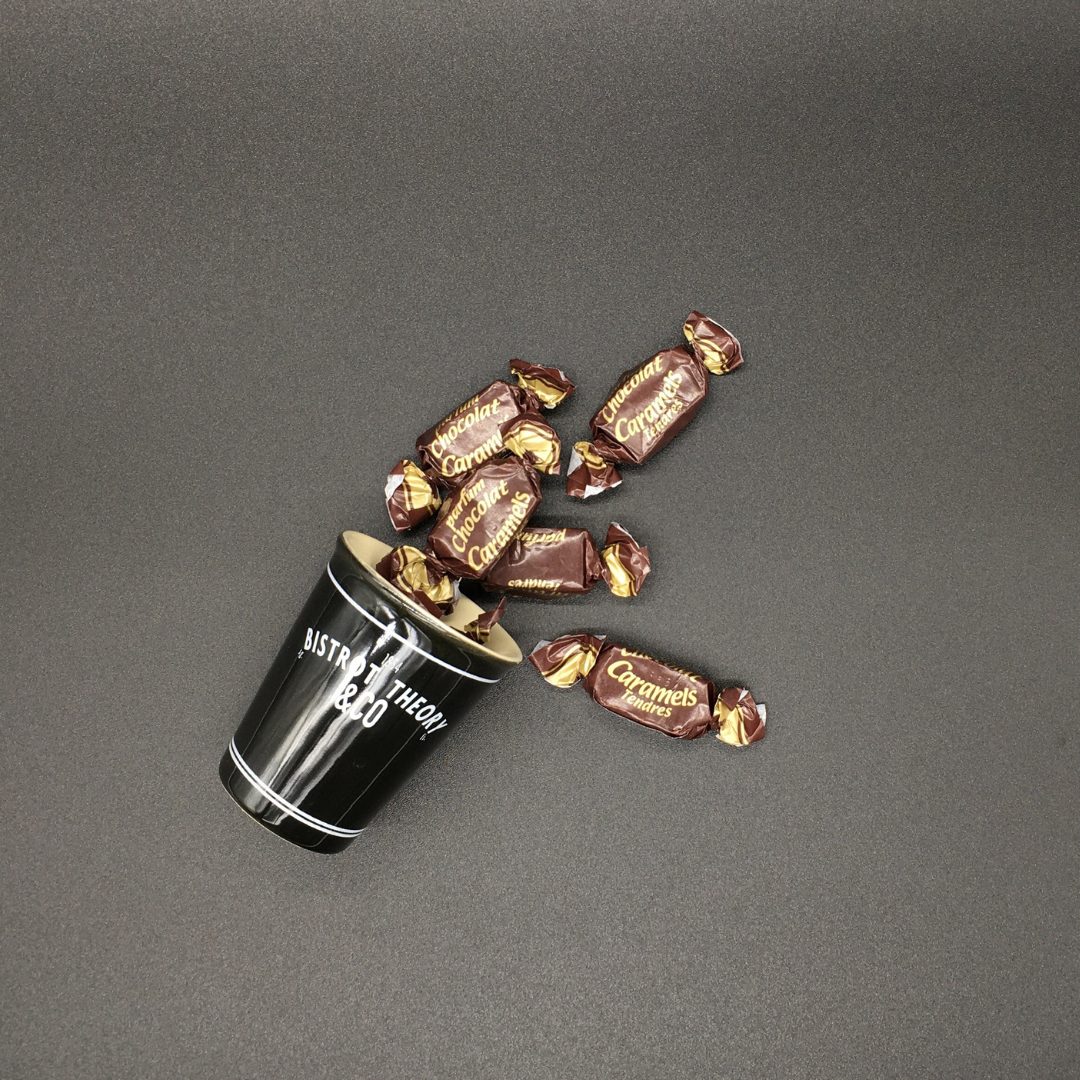 Taza negra para café Espresso  – 50g Caramelos tiernos de Dupont d’Isigny